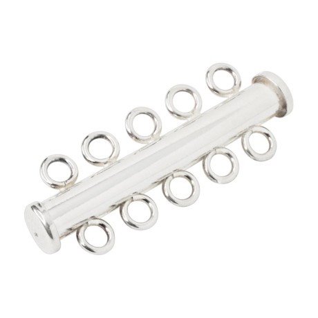 Cierre de collar de plata de ley 925ml. Charnela de tubo con pasador cilíndrico, con diez asas. Para pulseras y collares de cinco vueltas. Fácil de usar y seguro.