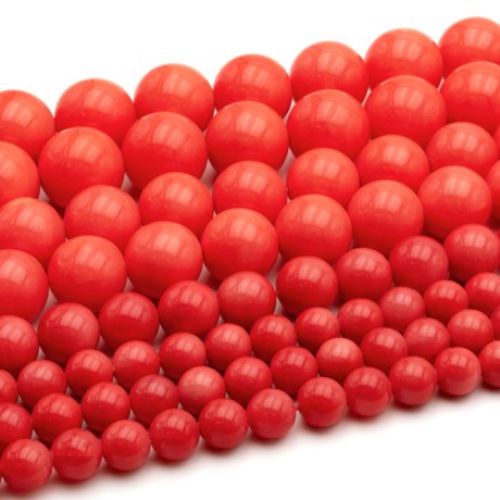 Hilos de coral falso con recubrimiento sobre bolas de nácar pasado. Color coral meditérráneo tono medio.